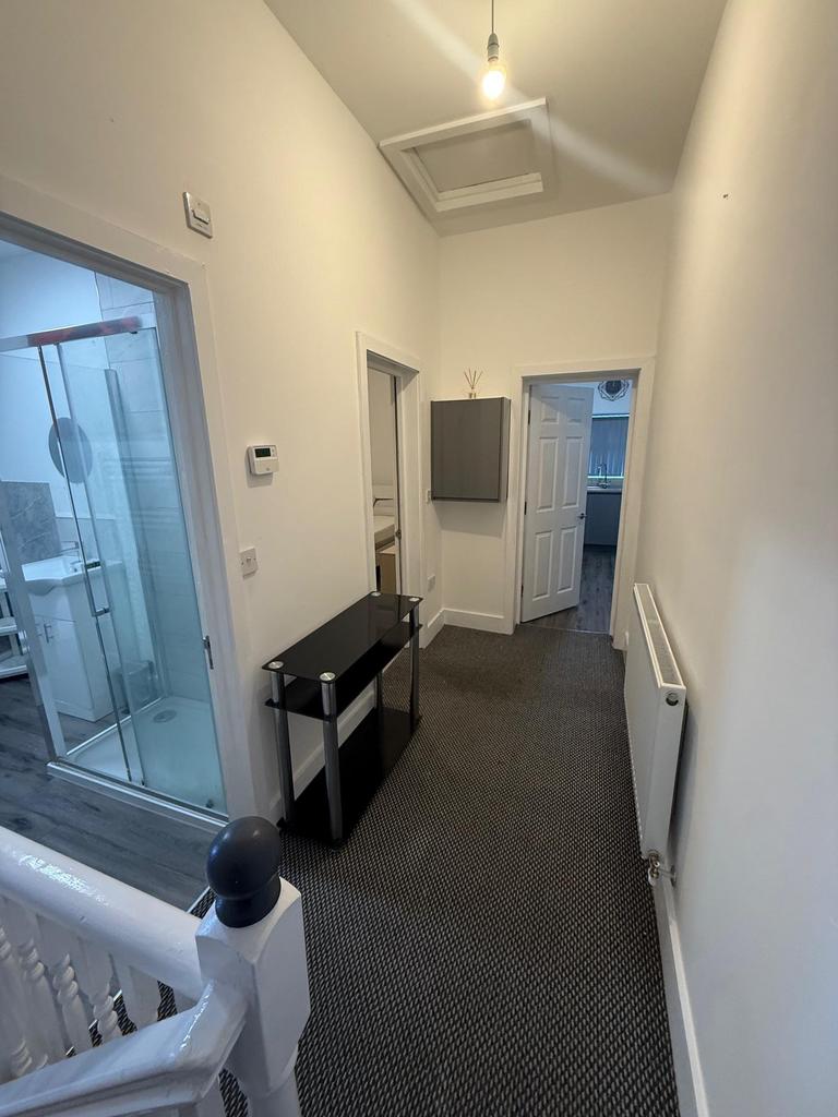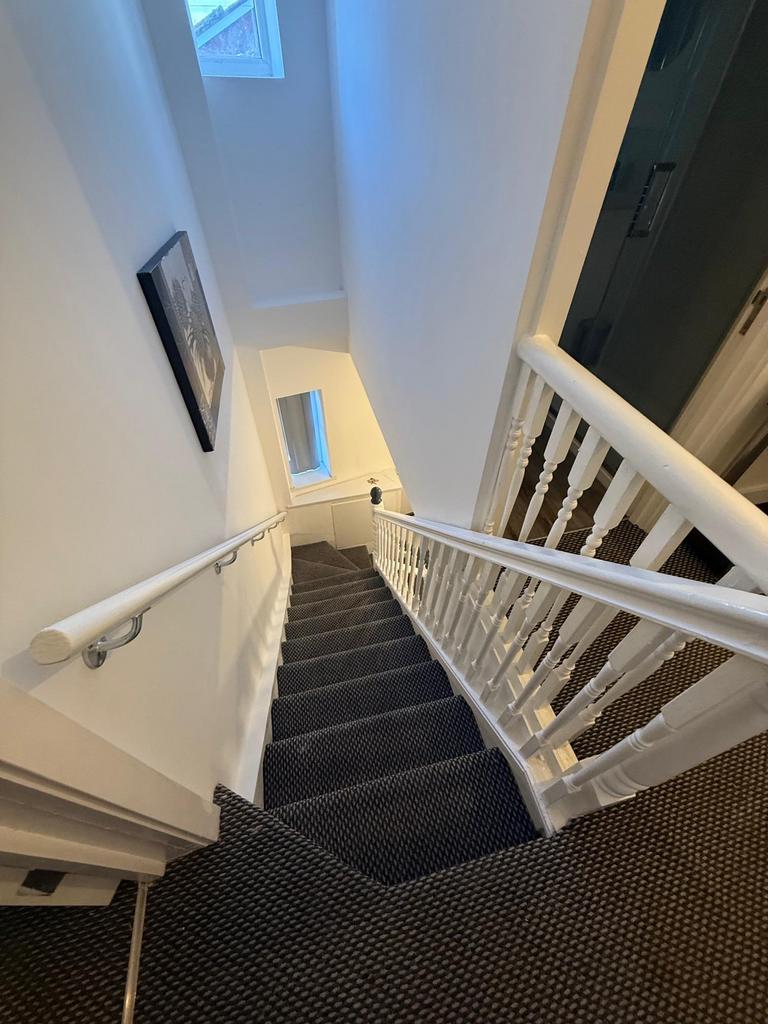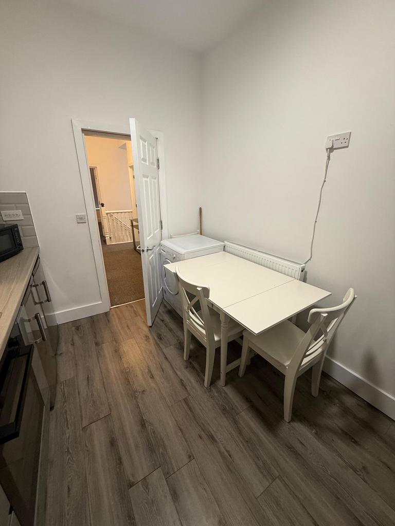 With its own private ground floor entrance, the property welcomes you into a handy landing area—perfect for storing a pushchair or bicycle. A staircase leads up to the heart of the apartment, where a spacious lounge offers a comfortable retreat, ideal for relaxing or entertaining guests. The modern bathroom features elegant fixtures and a sleek shower, while the end of the hallway opens into a fully fitted kitchen. Here, keen cooks will appreciate the gas hob, electric oven, washing machine, dryer, and efficient gas boiler, all complemented by modern cabinetry and surfaces.