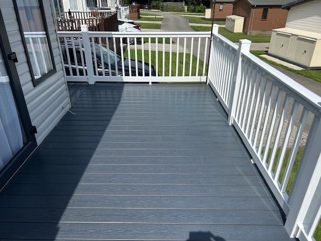 The spacious open-plan living area is flooded with natural light and features double sliding patio doors that open directly onto a huge wraparound decking area — ideal for relaxing, entertaining, and enjoying long alfresco evenings with uninterrupted lake views.