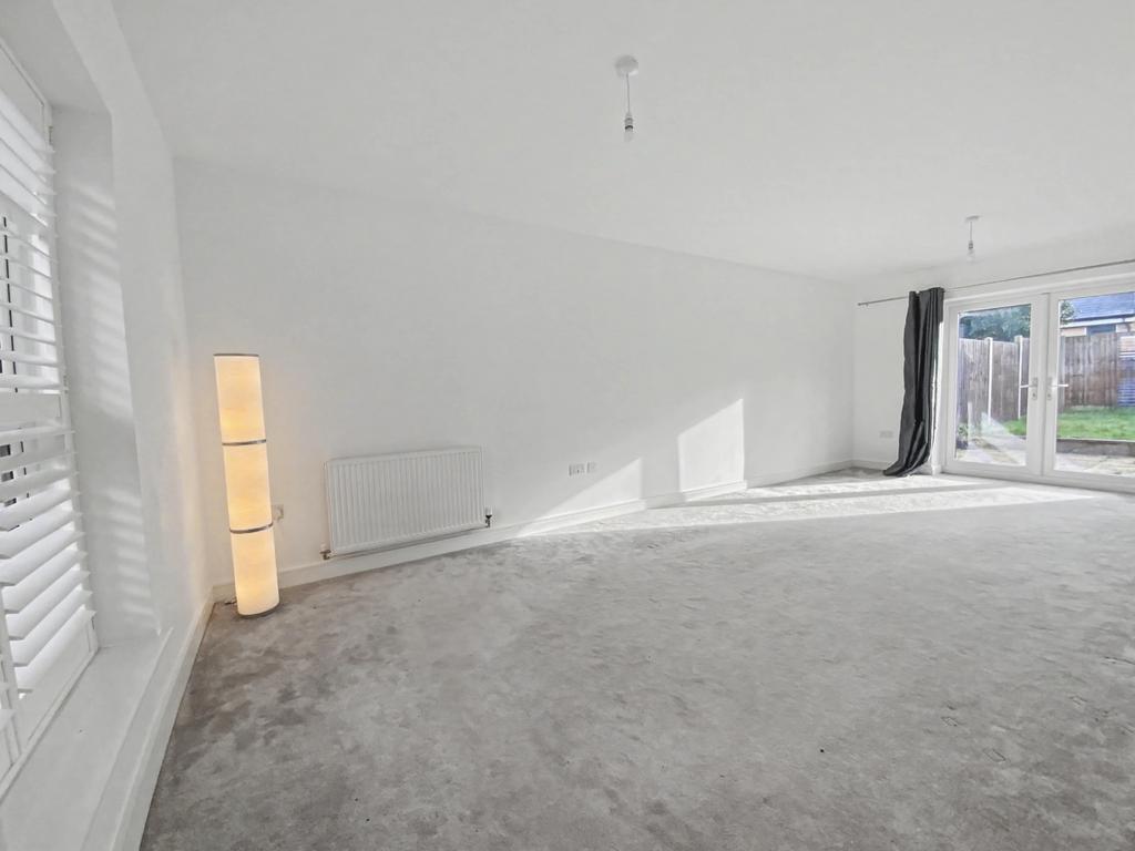 The inviting living room offers a bright and airy space, accentuated by double doors opening out onto the garden.