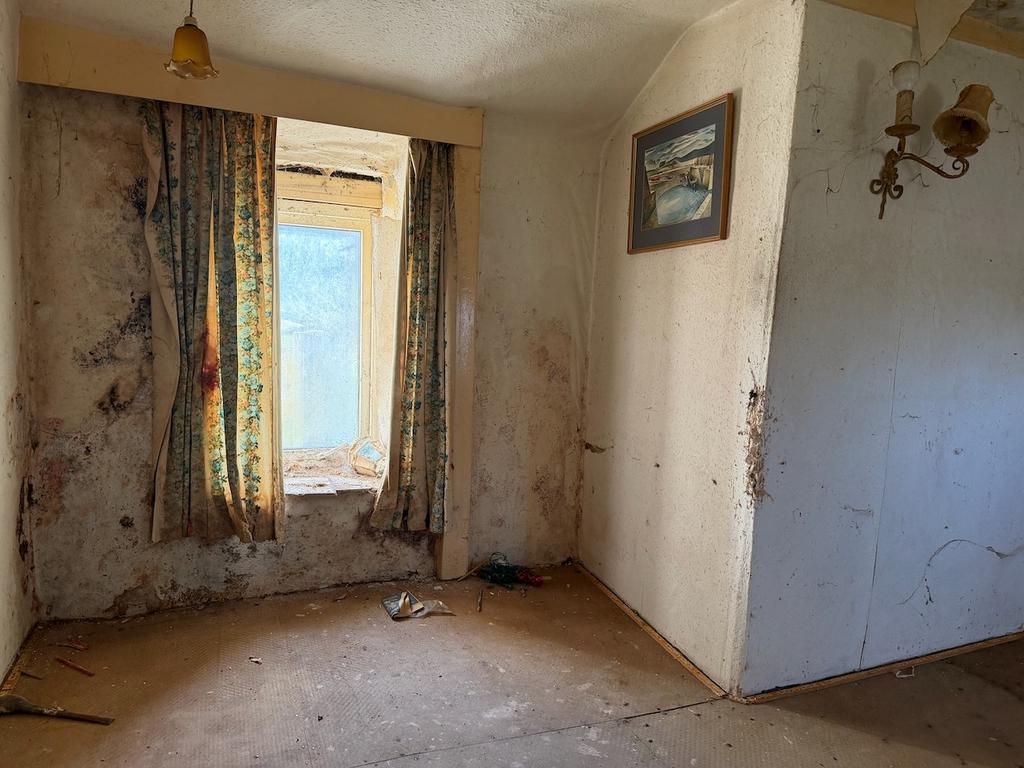 Downstairs, there is a large front room with space for seating and dining areas, with a wood-burning stove in the heart of the room. At the rear, there is a kitchen and bathroom, but it should be noted that this single-storey extension requires demolition.