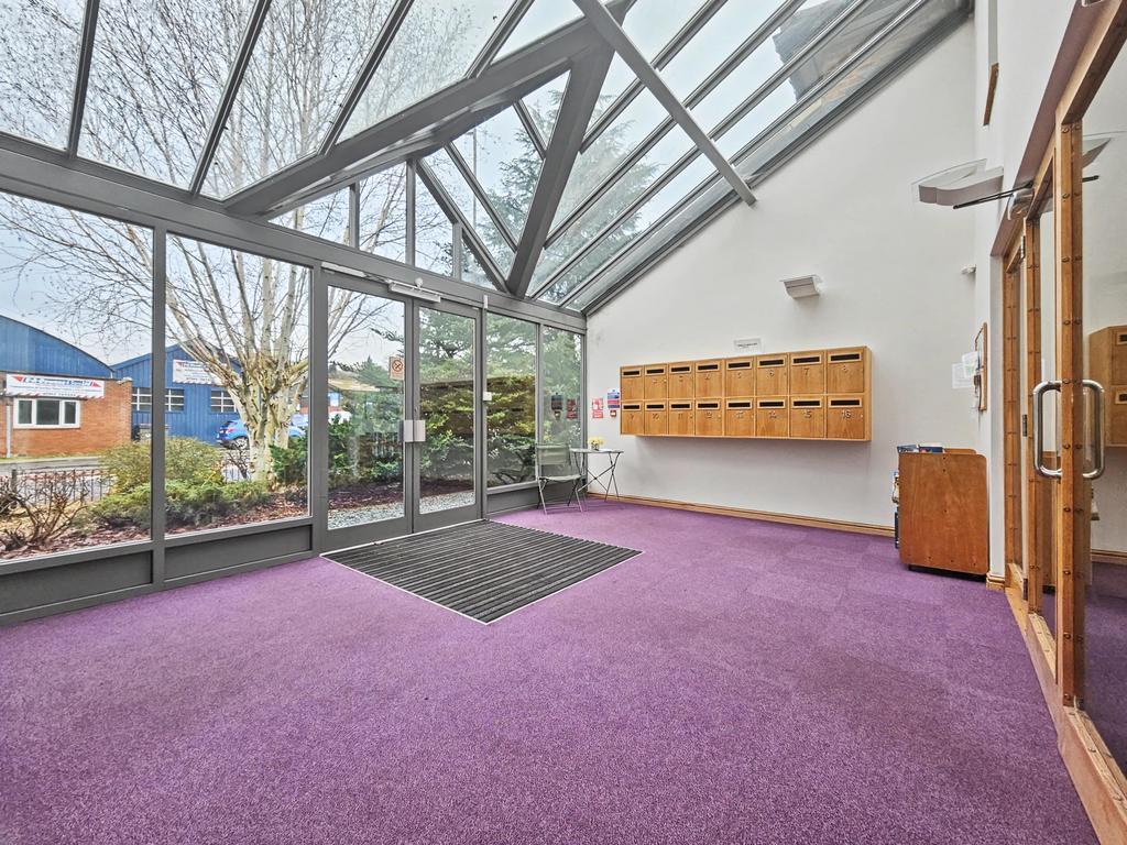 - Glass atrium entrance lobby