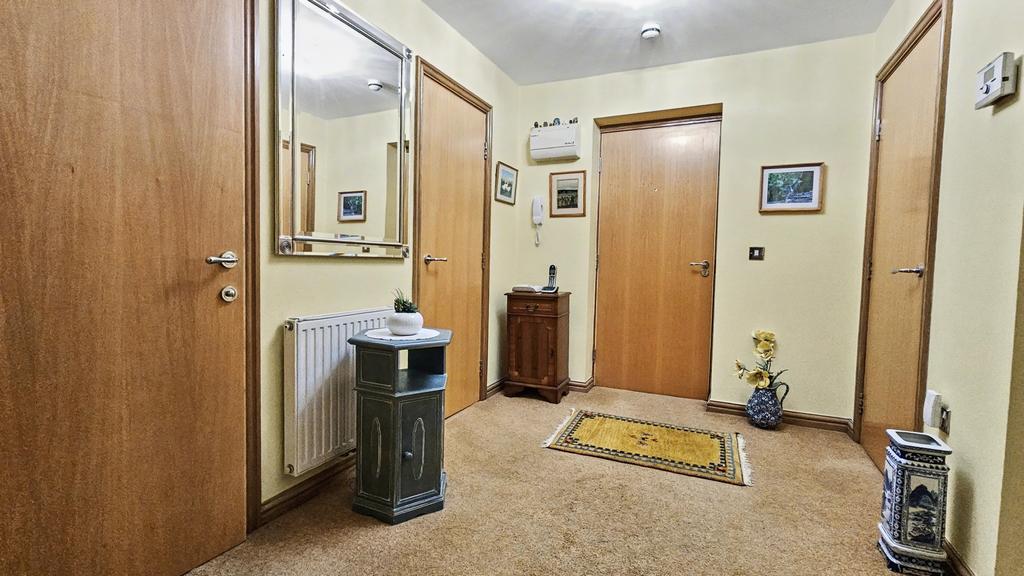 There are communal areas, easily managed gardens, a dedicated parking space for each apartment, one visitors parking space, bin room, spacious reception hallway, and rear entrance door. Both the front and rear doors feature security systems.