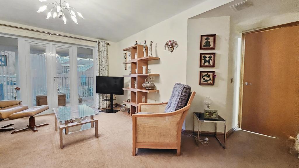 SITTING ROOM (4.5m x 3.6m approx)(14'7" x 11'8" approx) with fitted carpet, coving, radiator, TV aerial point, telephone point, and part glazed patio doors to the sun room.