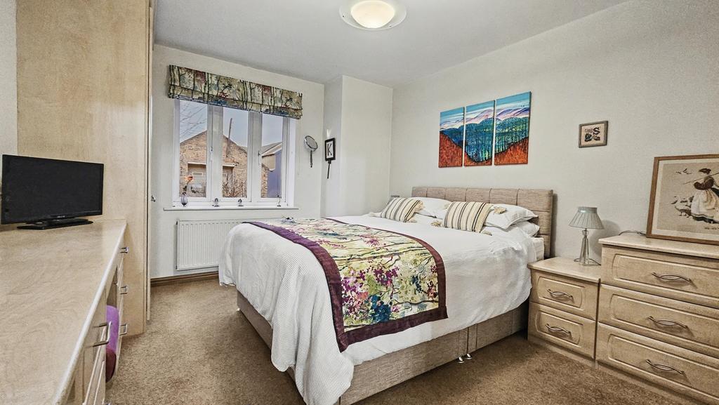 BEDROOM 1 (4.1m x 3.2m approx)(13'4" x 10'4" approx) with fitted carpet, coving, radiator, floor to ceiling fitted wardrobes with vanity unit, and fitted drawer units/bedside drawers.