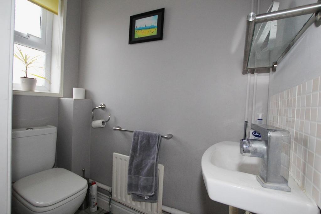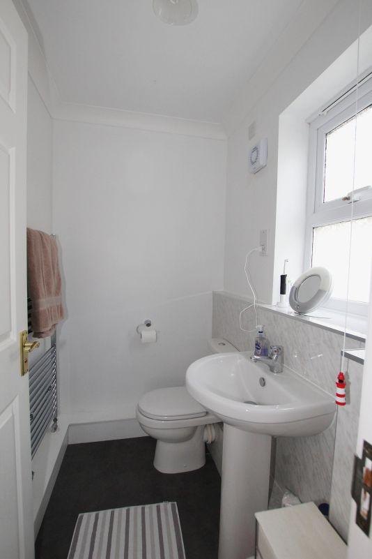 Ground Floor Cloakroom: Obscure window to front elevation, low level WC, wall mounted wash hand basin with tiled splashback, radiator.