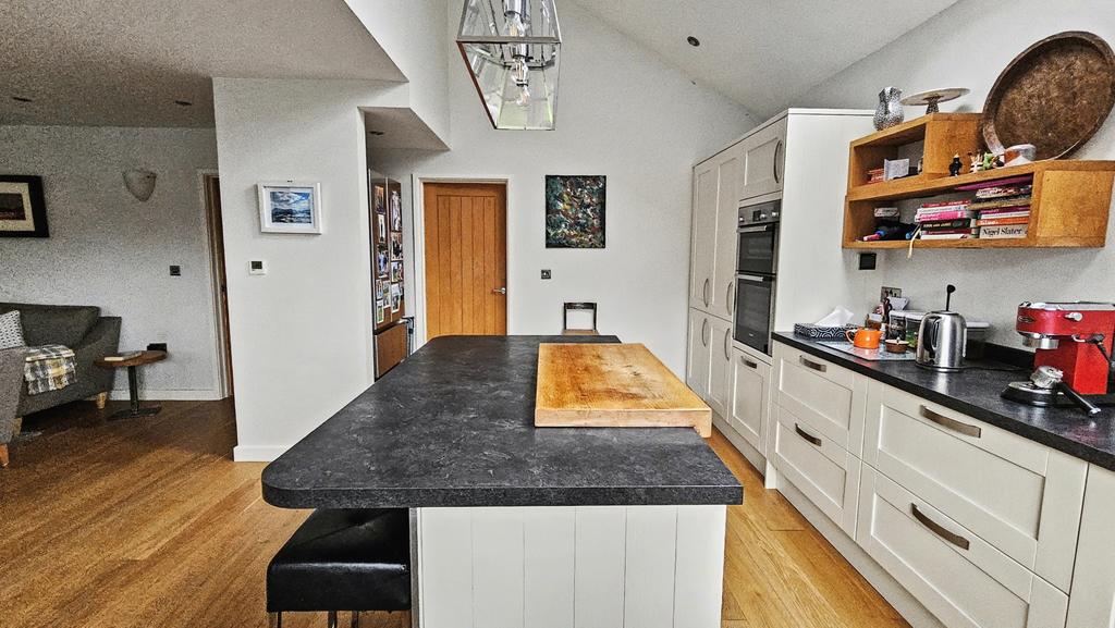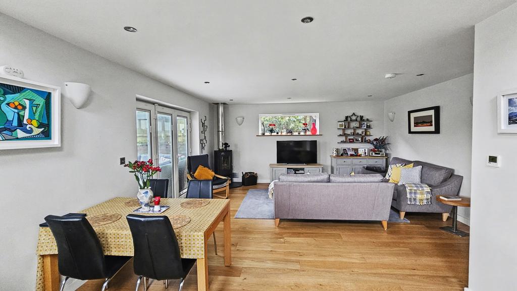 Open-plan SITTING ROOM/KITCHEN (8.4m x 5m approx)(27'5" x 16'4" approx) with engineered oak flooring throughout.