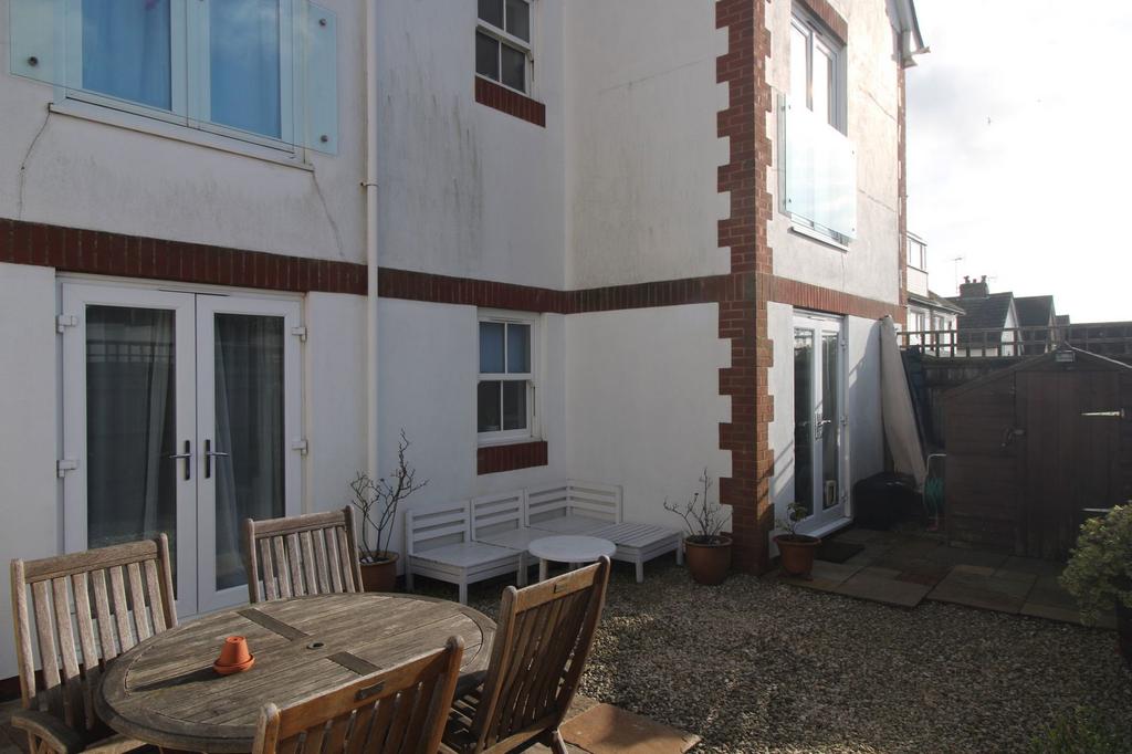 The west-facing rear garden is a generous and private space, thoughtfully landscaped with a paved patio and a shed, perfect for outdoor relaxation or entertaining. Gated access leads directly to the private residents' car parking area behind the building.