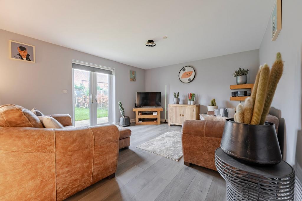 The lounge offers a comfortable and well-proportioned living space, enhanced by wood-effect flooring and excellent natural light. Double-glazed double doors open directly out to the rear garden, creating an easy connection between indoor and outdoor living and allowing the room to feel bright and inviting throughout the day.