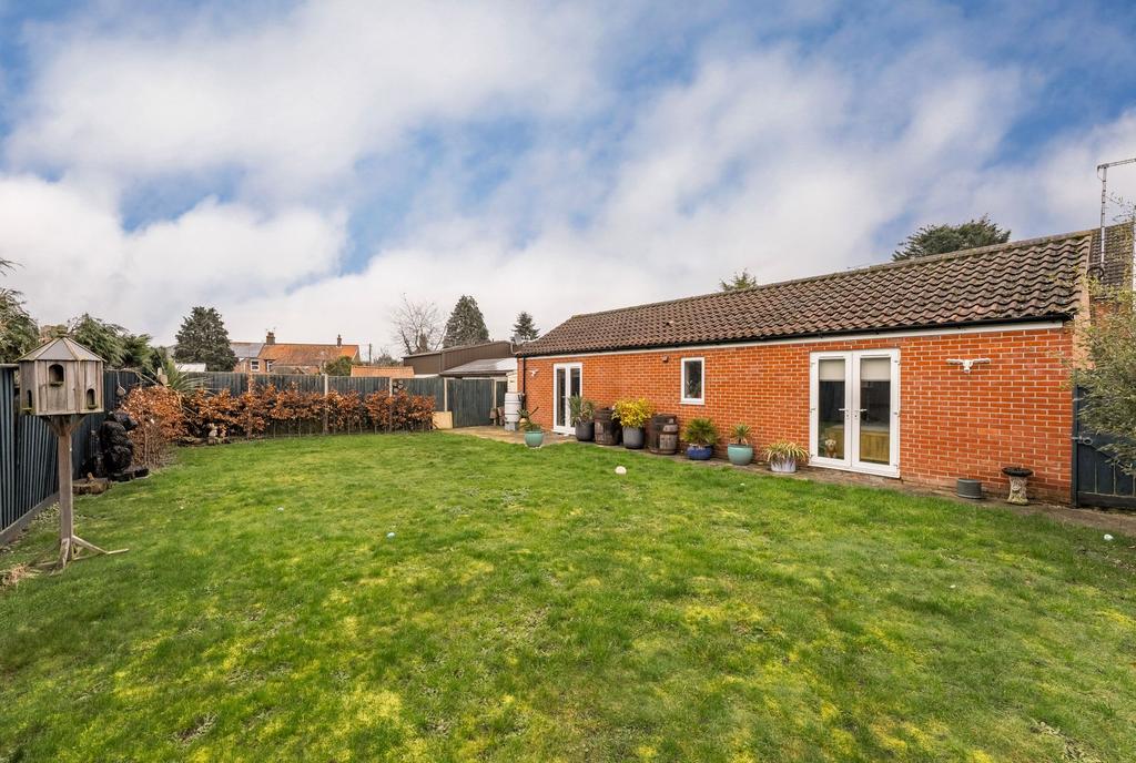 Tucked away within a village setting, this well-presented detached bungalow offers comfortable and easy single-storey living. The accommodation includes two double bedrooms with built-in wardrobes, a light-filled fitted kitchen with tiled splashbacks, and a lounge finished with wood-effect flooring and doors opening out to the garden. A family bathroom completes the internal layout, while the spacious enclosed rear garden provides plenty of room for seating and everyday enjoyment. Externally, the property benefits from a gated gravel driveway with a covered carport and is situated within the North Norfolk village of Briston, close to local shops, cafés, public houses, a primary school, and a medical practice.