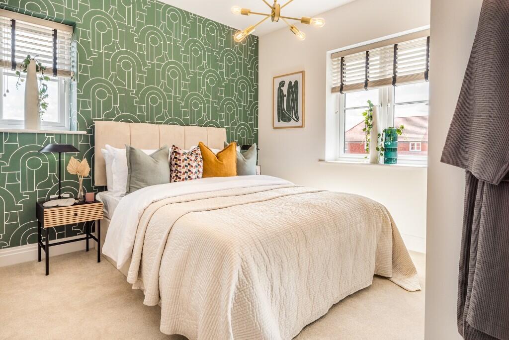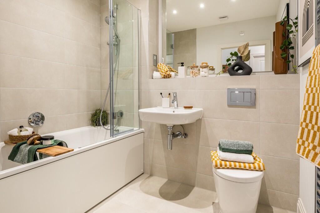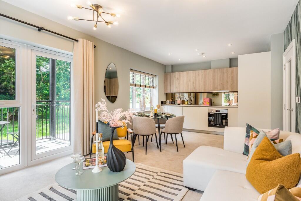 This brand new two bedroom apartment is positioned on the first floor and enjoys a peaceful outlook overlooking landscaped green space and a large country park. Designed with modern living in mind, the home offers a bright and well-proportioned open-plan kitchen, dining and living area that flows seamlessly onto a south-west facing patio, creating an ideal space for relaxing or entertaining.