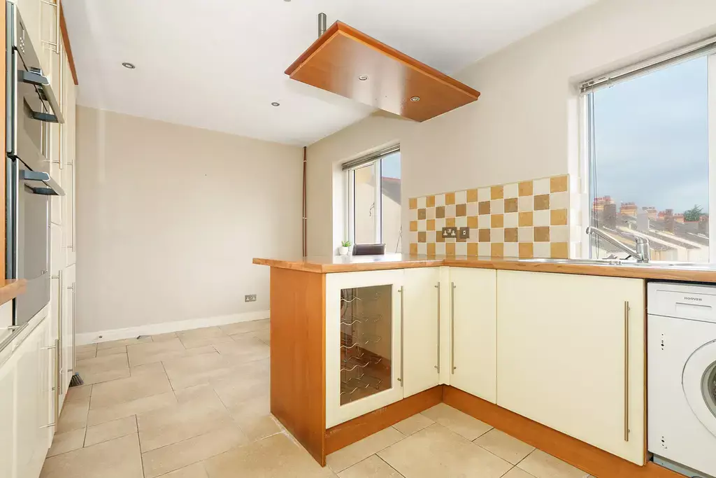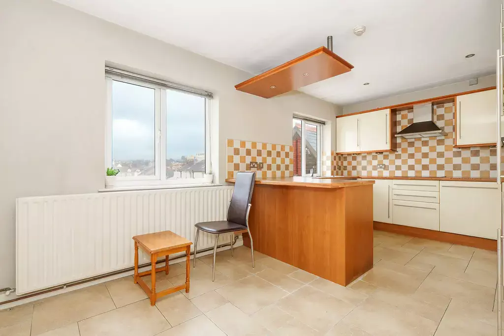 At the heart of the home is a large dual-aspect living room, creating a bright and welcoming space ideal for both relaxing and entertaining. The dining kitchen is well appointed and features a breakfast bar, offering a practical yet sociable layout.