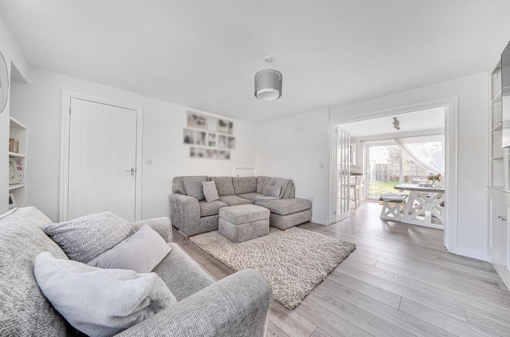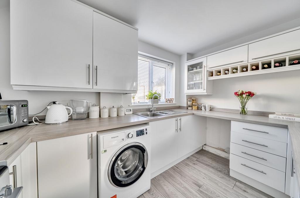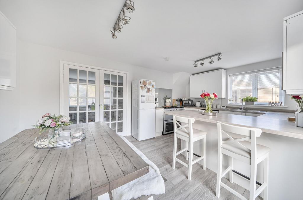 The kitchen is open plan to the dining room, creating a fantastic hub for everyday living and entertaining. It is fitted with a contemporary range of units, integrated appliances and ample storage, while doors open directly onto the rear garden, allowing plenty of natural light to flood the space.