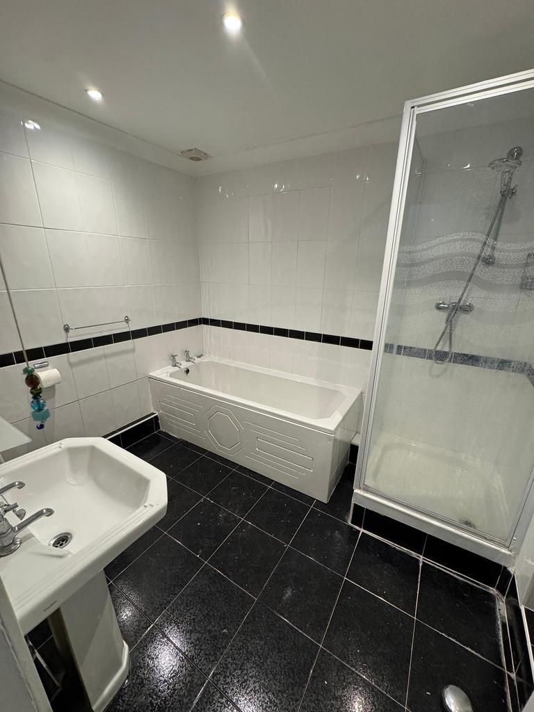 3. Modern bathroom with a bathtub plus a separate shower area.