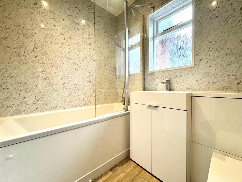 The ground floor comprises a bright and spacious living room, providing a comfortable space for everyday living and entertaining. The fitted kitchen offers ample cupboard and worktop space and provides direct access to the rear garden.