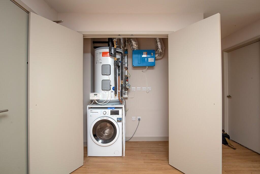 - Your utility room will come fully equipped with ample storage space, a ventilation unit and a combination washer dryer.