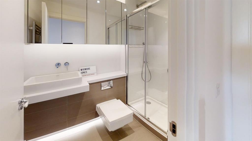 The accommodation comprises two generous double bedrooms, both featuring custom built-in wardrobes. The primary suite serves as a luxurious retreat, complete with a stylish, contemporary ensuite bathroom. Every detail has been considered, with underfloor heating and beautiful wooden flooring running throughout the entire apartment to ensure consistent comfort and elegance.