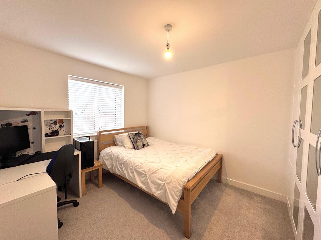 Externally, the rear garden is predominantly laid to lawn with a small patio area, creating an ideal space for outdoor dining and summer entertaining. The garden also benefits from side access leading directly to the driveway. Additional features include a shed for extra storage and two allocated parking spaces.