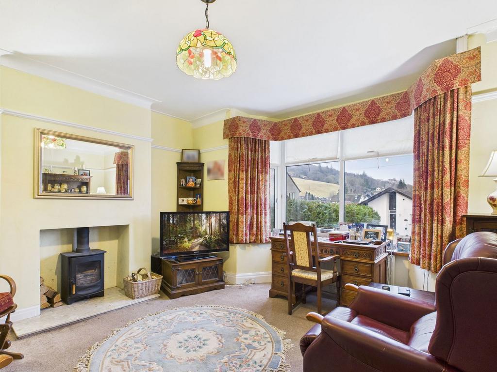 A well proportioned room featuring a bay window that enjoys attractive views towards the lower slopes of Wansfell Pike. The room is complemented by a multi fuel stove set on a marble hearth, a TV point, picture rails and inset alcoves.