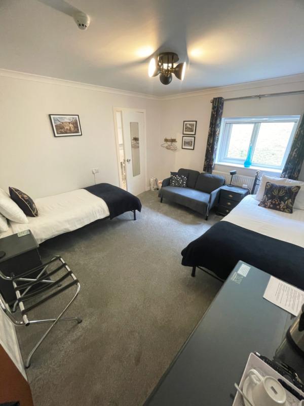 Spacious rear facing twin room with a seating area. Quality fitted carpet flooring.