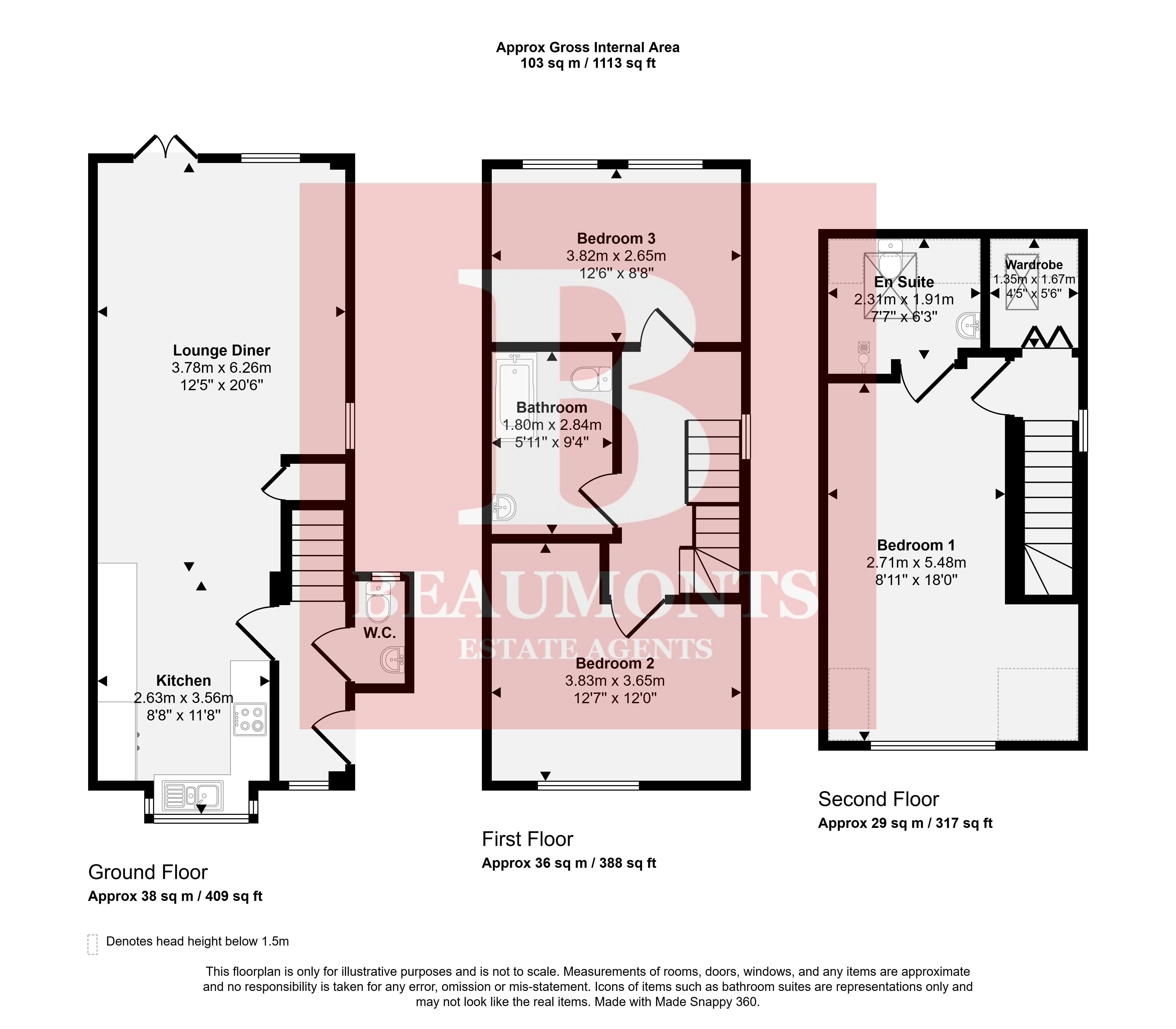 The ground floor features a superb open-plan living area with a contemporary fitted kitchen — a great social space that works beautifully for everyday life and entertaining. There’s also a separate W.C. on this level. On the first floor are two comfortable double bedrooms along with a smart, modern family bathroom. The top floor is dedicated to an impressive main bedroom suite, complete with walk-in wardrobe and a sleek En-suite wet room. Outside, the property enjoys a paved patio garden and the convenience of off-road parking at the front.