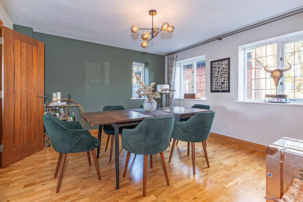 From the outset, the home impresses with its sense of privacy and space. A substantial block-paved driveway provides parking for numerous vehicles, framed by mature trees and hedging. A solid wood front door opens into a welcoming entrance hall, immediately showcasing the quality and scale of the accommodation, with attractive flooring flowing throughout the ground floor.