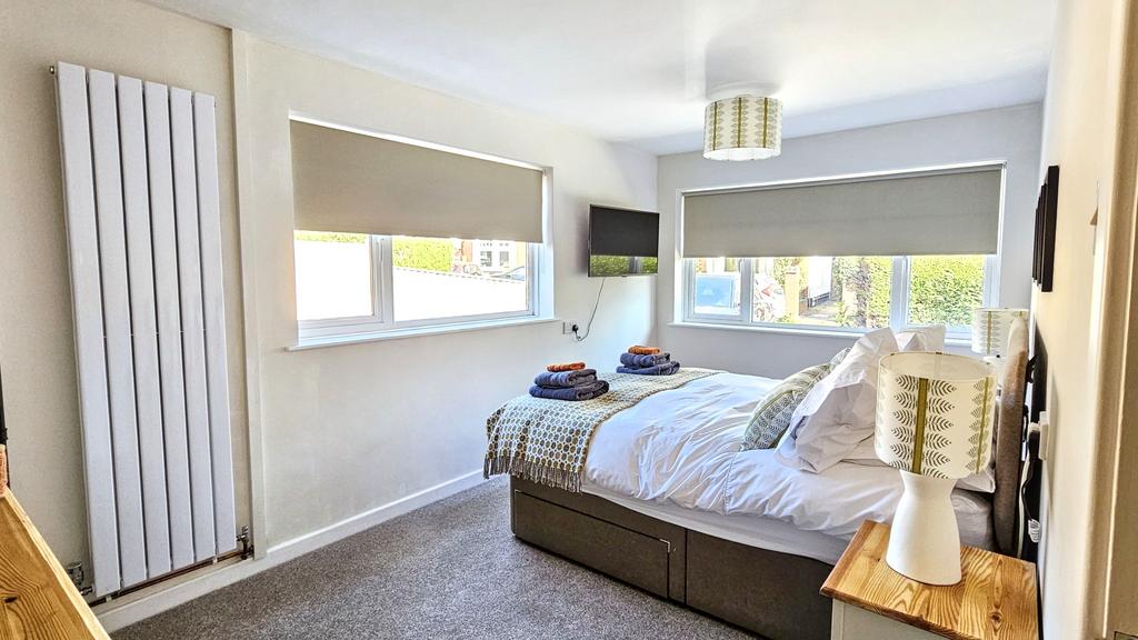 BEDROOM 1 (4.7m x 2.6m approx))(15'4" x 8'5" approx) with fitted carpet, two windows, TV aerial point, radiator, and four power points.