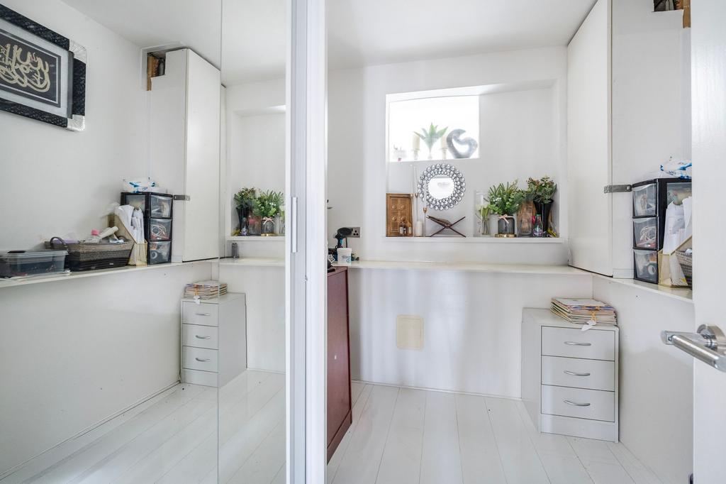 Externally, the property offers a private, low-maintenance garden, predominantly paved to accommodate seating and entertaining. A versatile outbuilding or studio provides space for working from home or pursuing creative projects.