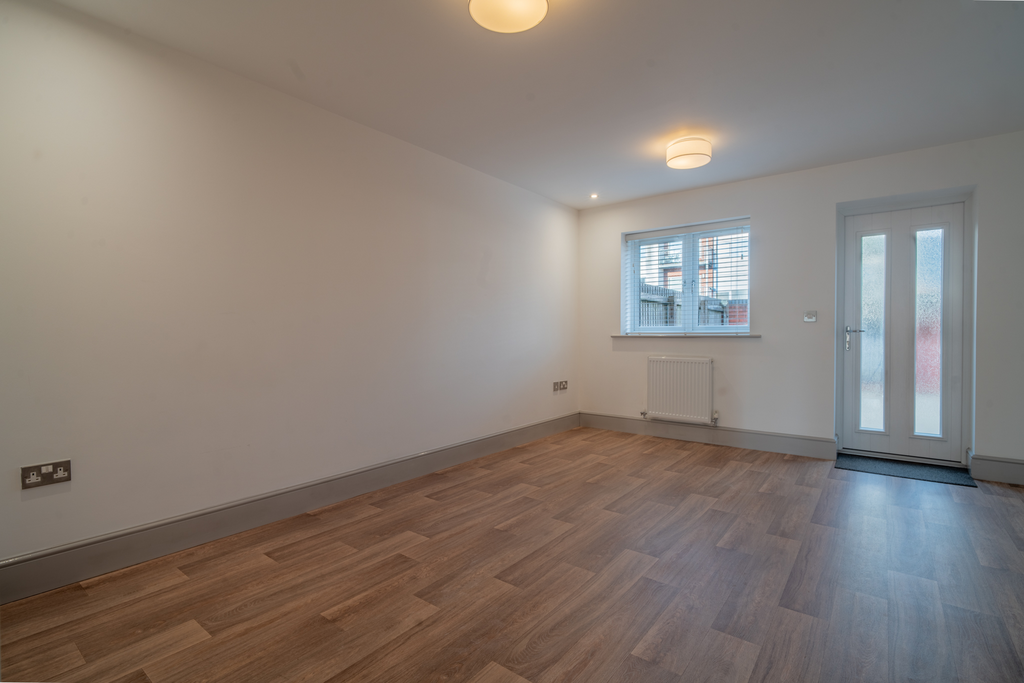 The ground floor features a stylish fitted kitchen to the front, complete with integrated appliances, while to the rear is a spacious living room with a generous storage cupboard, a convenient ground floor WC, and doors leading out to a private, low-maintenance garden