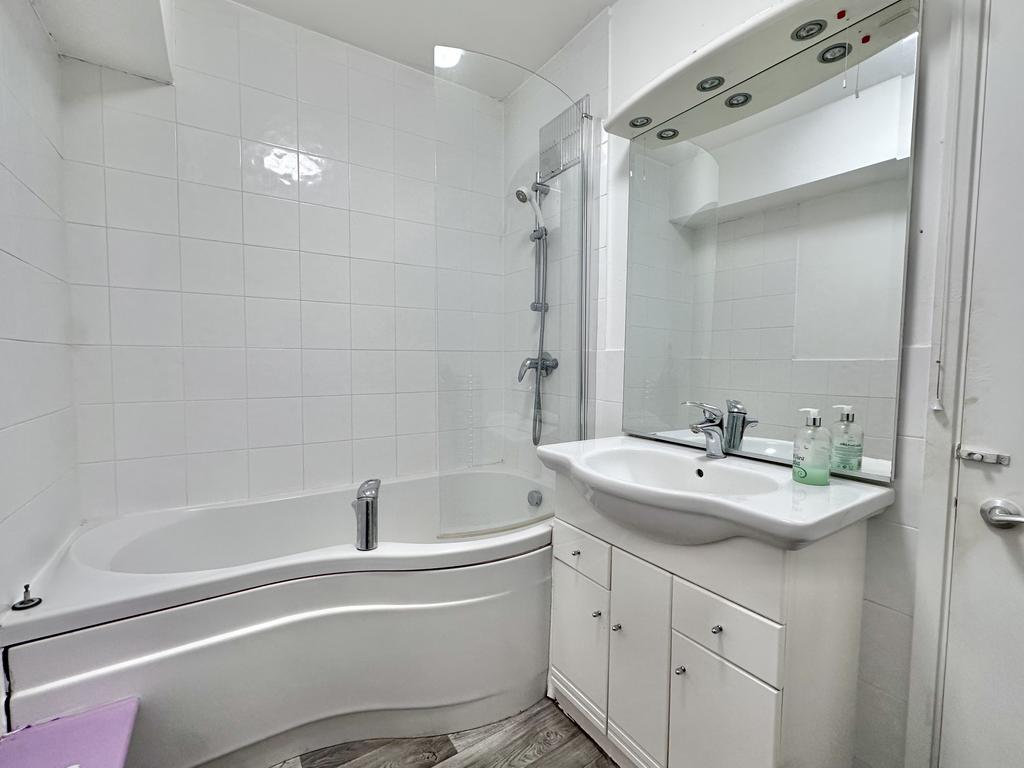 There is a bathroom which benefits from part tiled walls, wash hand basin and bath with shower over and glass shower screen. There is a separate WC with toilet and wash hand basin.