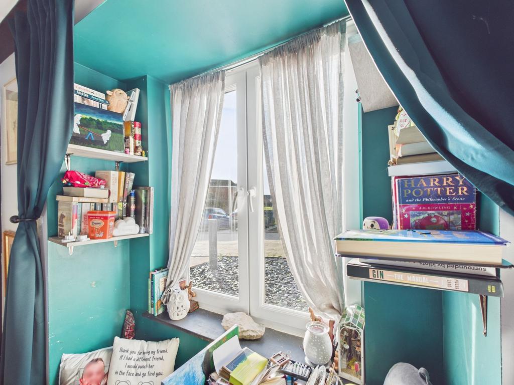 A double bedroom with a built-in wardrobe, airing cupboard and two west facing windows to the front.