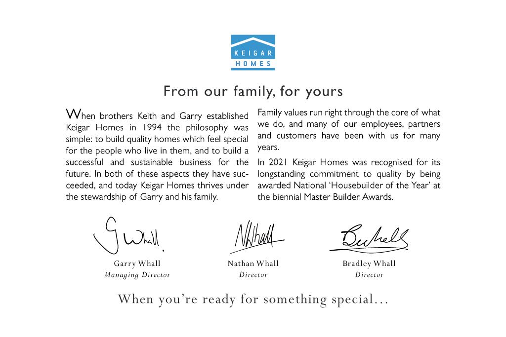 All Keigar homes include an electronically fitted alarm system, high specification door and window locks. Smoke alarms to each floor.