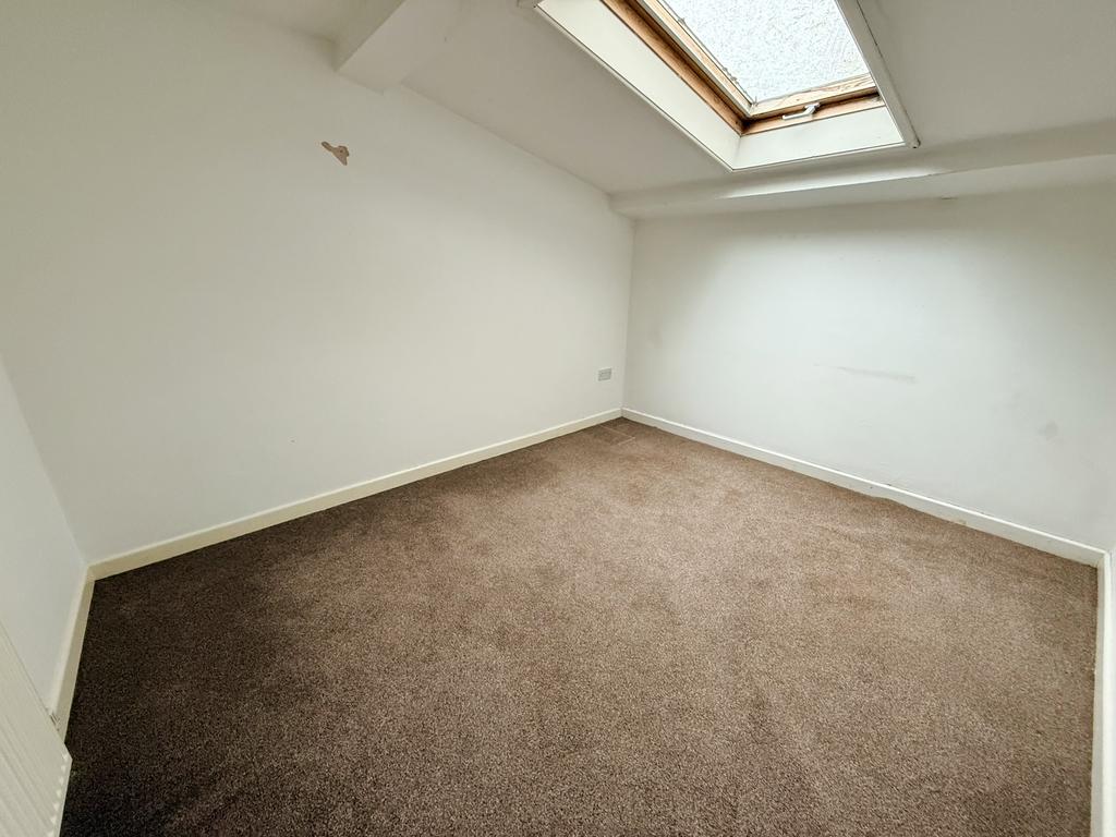 Single bedroom with Velux roof window, radiator, built-in wardrobe.