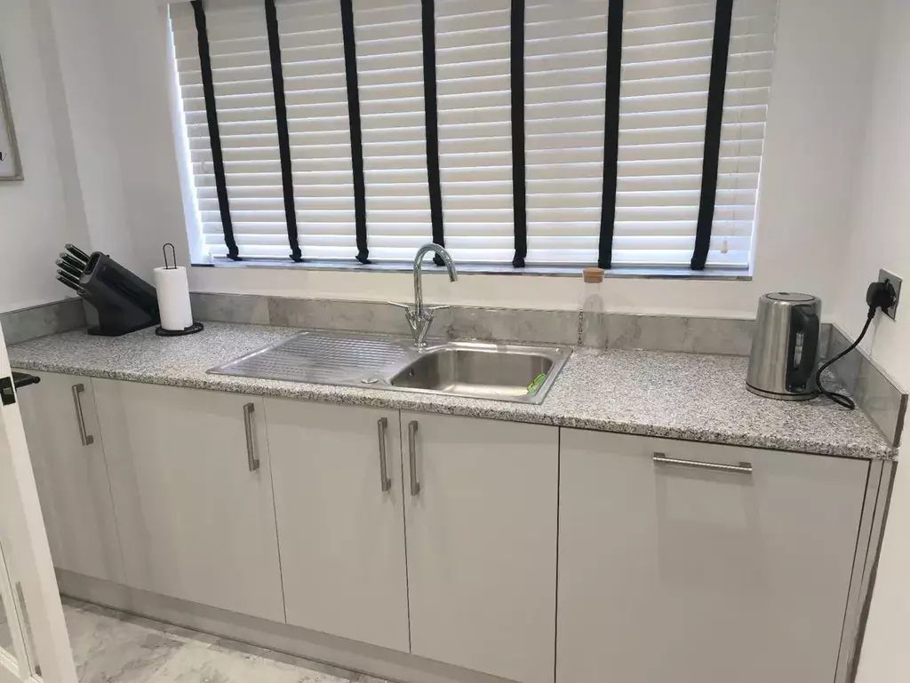 KITCHEN: A new fully equipped kitchen with white goods such as dishwasher, large fridge freezer, Washing Machine, Microwave, Fruit Blender, Kettle, Toaster and ample storage.