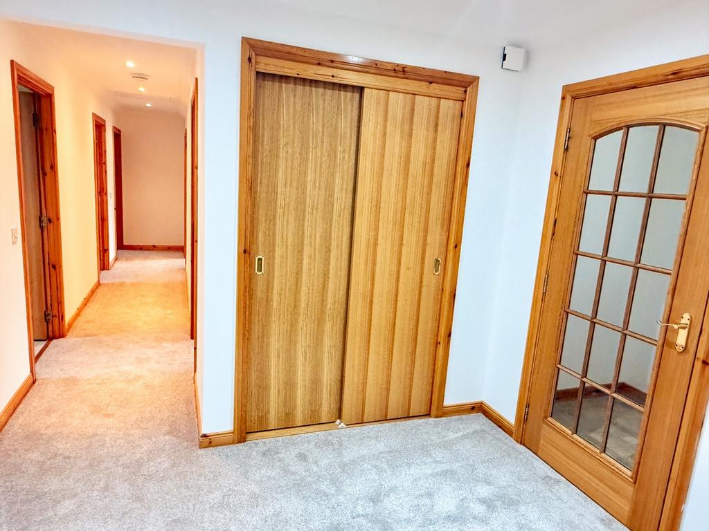 Fitted double storage cupboard housing the electric meter and fuse box. Loft access hatch. Radiator. Carpeted.