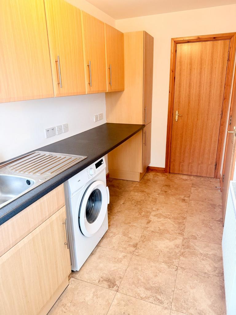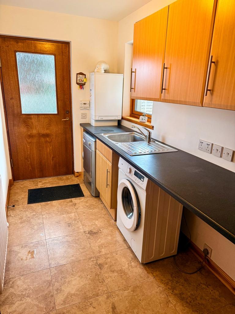 Fitted wall and base units. Washing machine and tumble dryer. Extractor fan. Gas boiler and control panel. Built in shelved