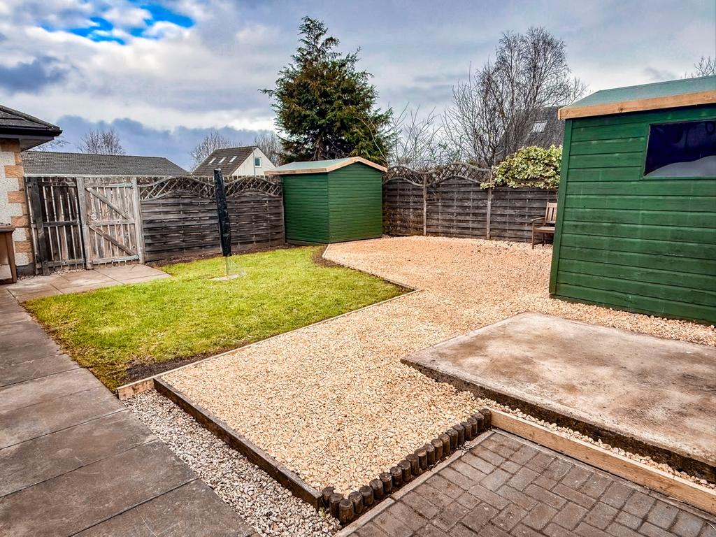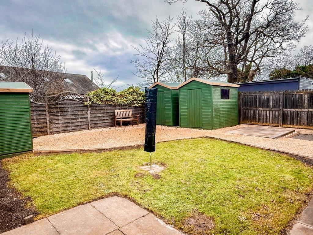 Lock block driveway for parking up to 5 vehicles. Enclosed garden area with three sheds. Access around the side.