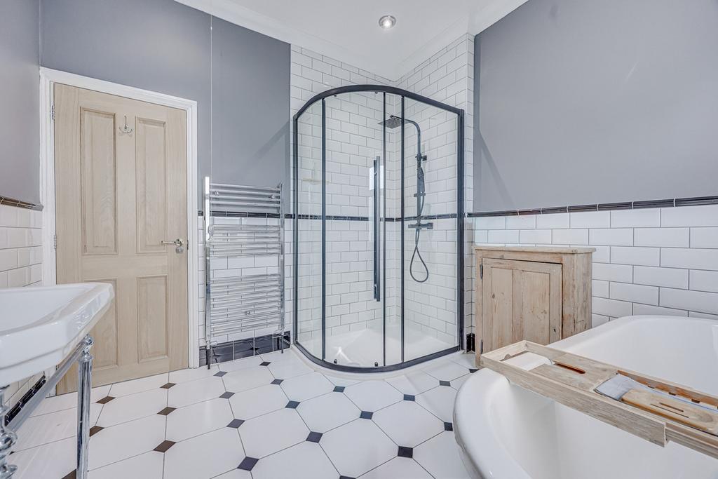 Upstairs, the first floor continues to impress with three well-proportioned bedrooms, each offering excellent space and versatility. The principal bedroom is particularly generous, while the remaining rooms are ideal for family use, guests or home working. A stylish, modern family bathroom completes the accommodation, finished with clean lines and quality fittings.