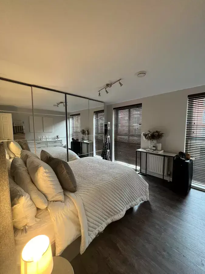 The principal bedroom benefits from fitted mirrored wardrobes and a stylish en-suite, while the additional bedrooms are equally well-proportioned and versatile for guests, family, or home office use.