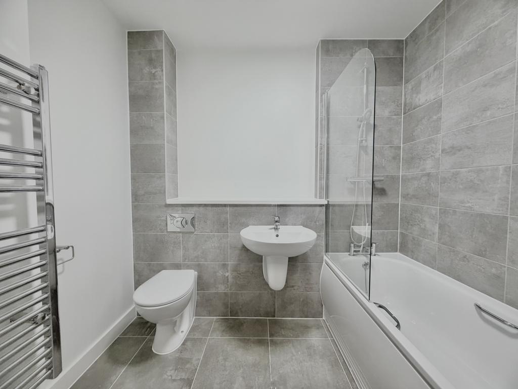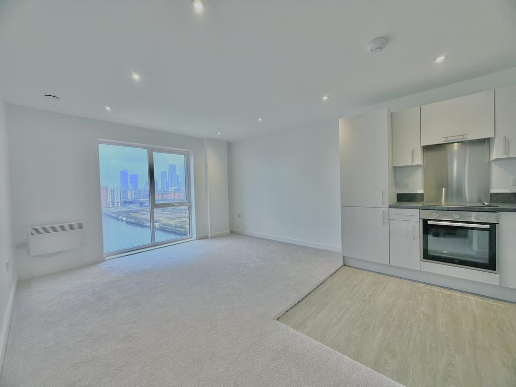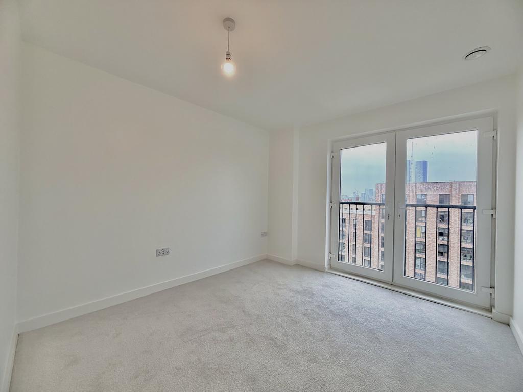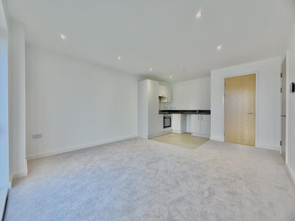 The contemporary fitted kitchen includes integrated appliances, while the generously sized double bedroom benefits from a French balcony, enhancing both light and ventilation. The apartment is finished in a neutral, modern style throughout and is presented in brand-new condition.