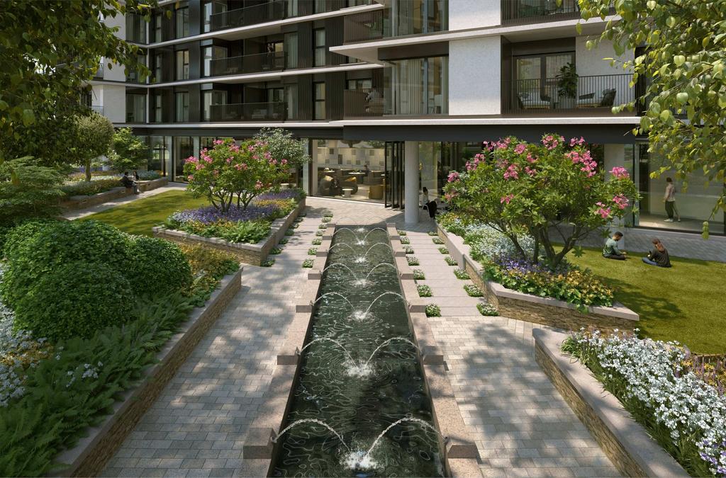 - Landscaped parks and gardens within the development