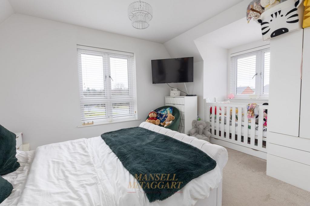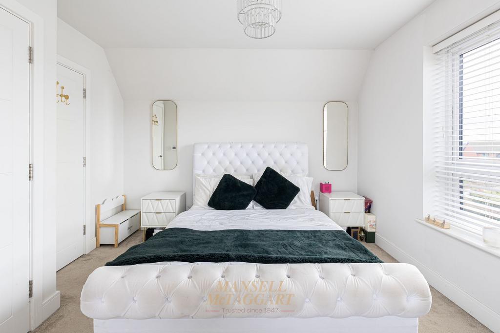 The first floor offers a generous size master bedroom with double fitted wardrobes, Juliet balcony and en-suite shower room with double walk-in shower, wash hand basin and low level W.C. The fourth bedroom is a double, located next door, also facing out onto the front aspect.