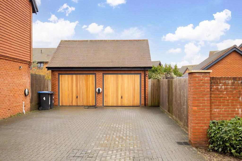 - Driveway parking for two vehicles and EV charger leading to a single garage