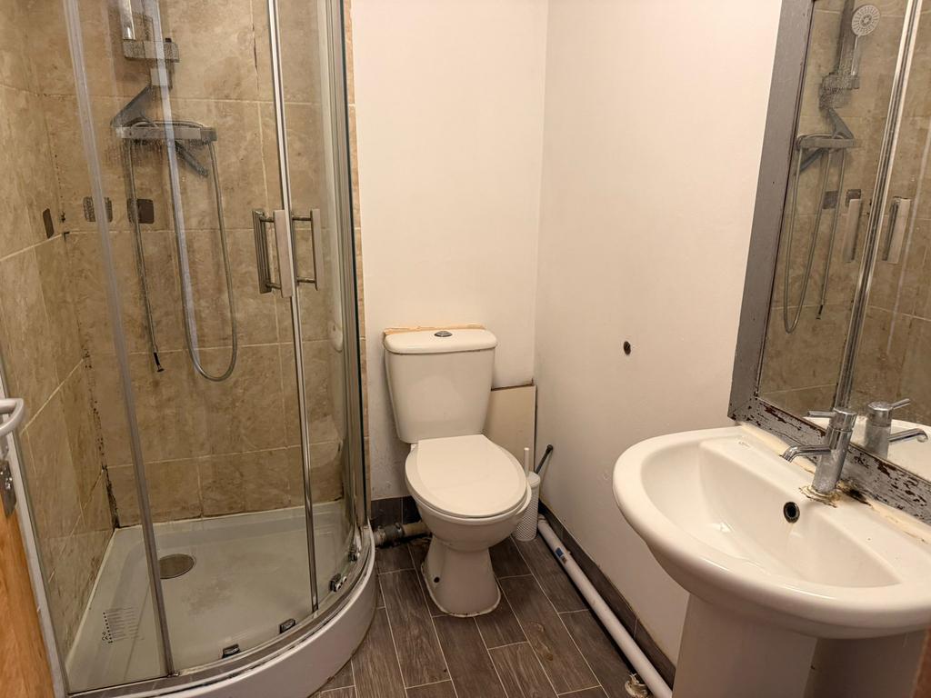 The flat boasts a spacious double bedroom, furnished to a high standard, creating a cosy and relaxing space. The open-plan kitchen and living area provides a modern layout, featuring a gas cooker, fitted units, and ample storage – perfect for cooking and entertaining.
