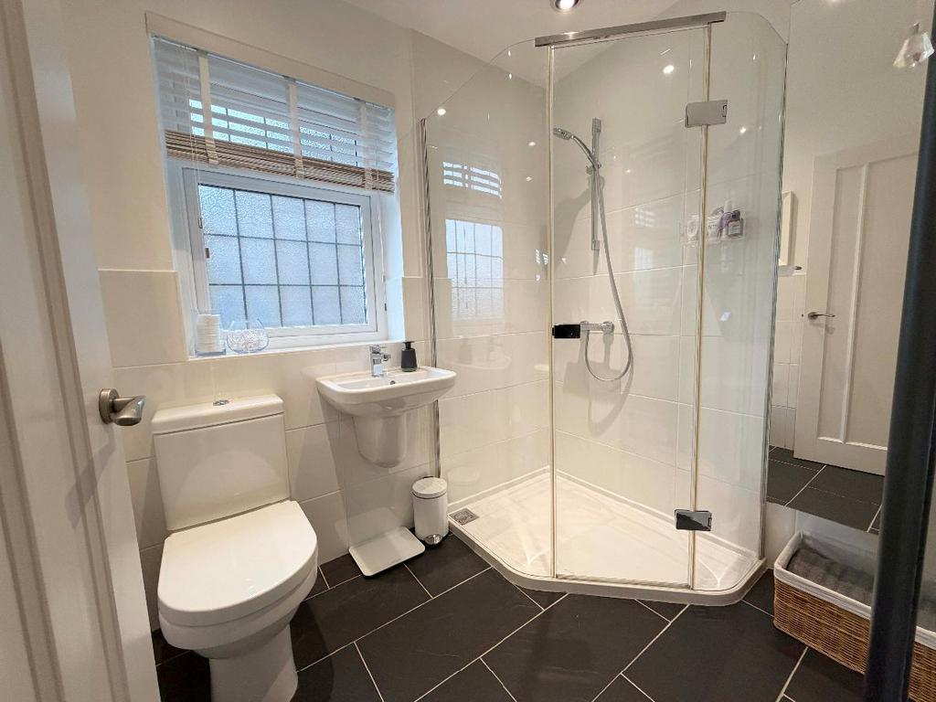 To the first floor sit 4 excellent bedrooms, the principal of which has walk in wardrobe and ensuite shower room. The well equipped and presented family bathroom provides bath and separate shower.