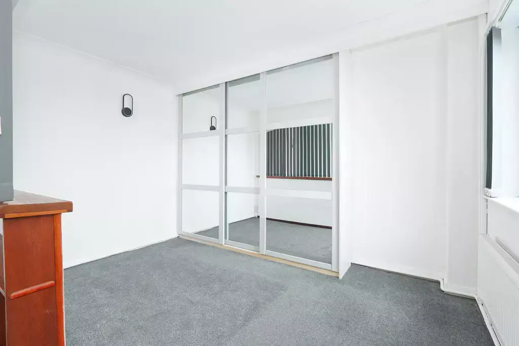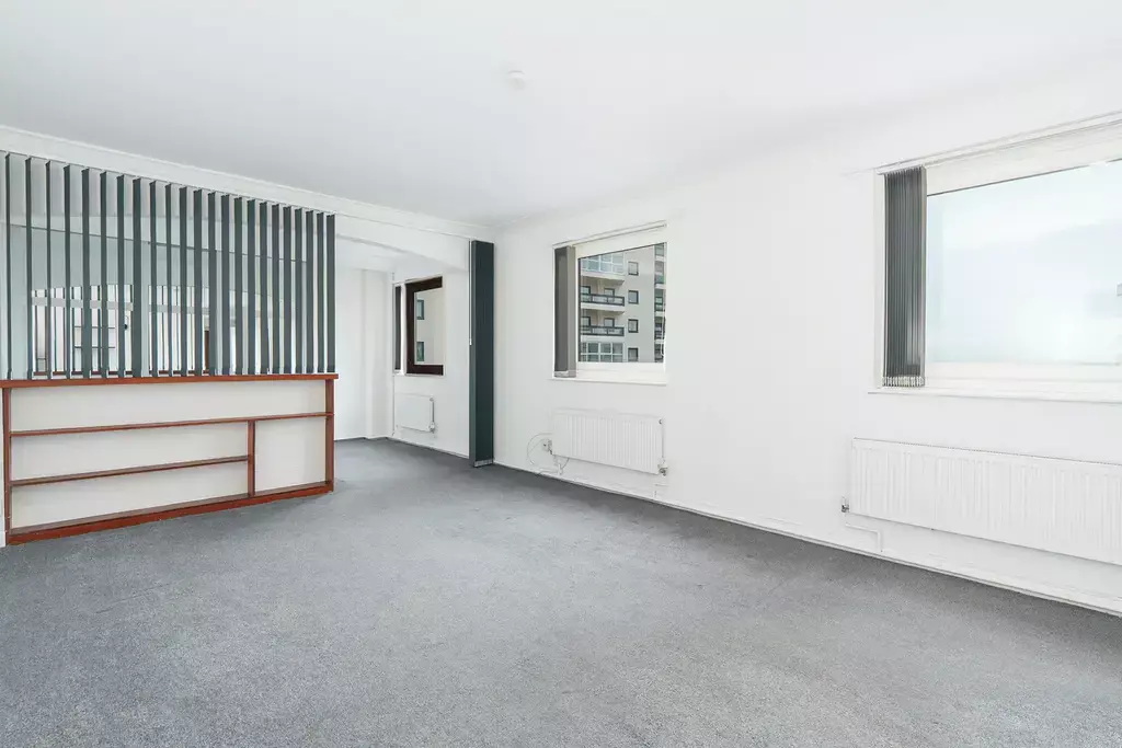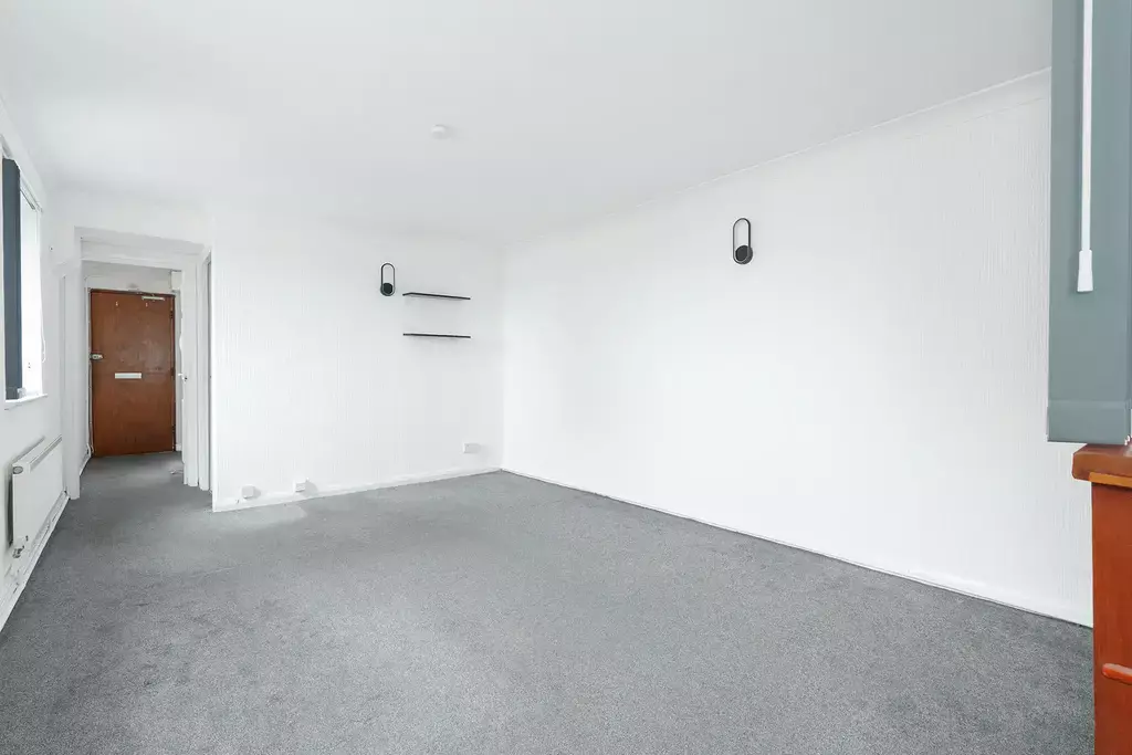 - Open plan living area with partition to bedroom area with fitted wardrobe