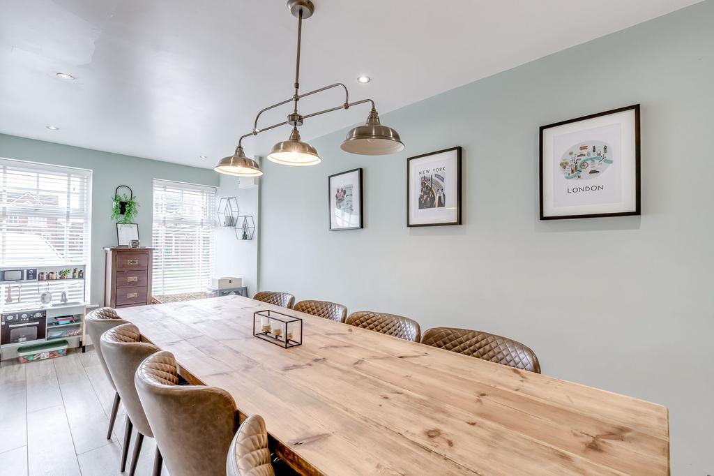 - Modern open‑plan kitchen/diner with ample worktops, sleek cabinetry and integrated appliances, opening into a bright family area ideal for everyday living and entertaining.