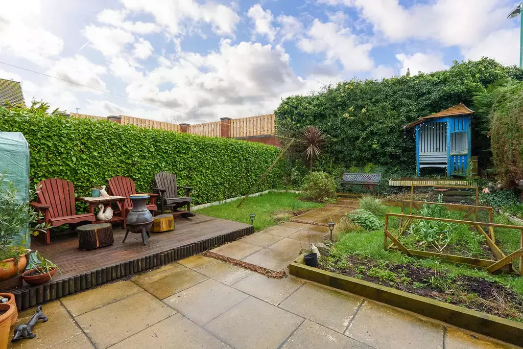- Externally the rear garden includes a patio, decking area, shrubs and mature hedging creating an abundance of privacy