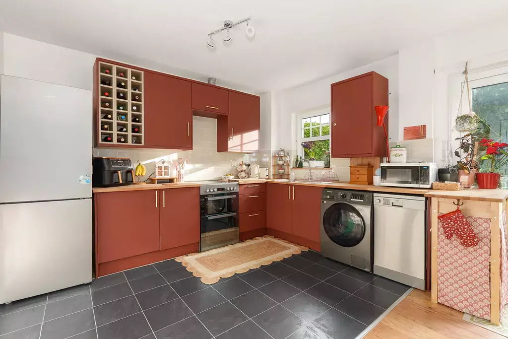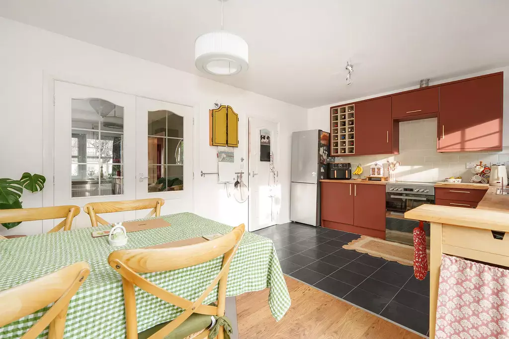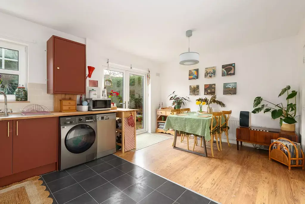 The interior is stylishly presented throughout, featuring a striking new kitchen with feature colour finishes. The accommodation begins with a welcoming hallway with a convenient cloakroom (WC). There is a lovely living room, along with a modern and newly fitted dining kitchen that enjoys sliding doors opening directly onto the rear garden—ideal for entertaining and everyday family life.