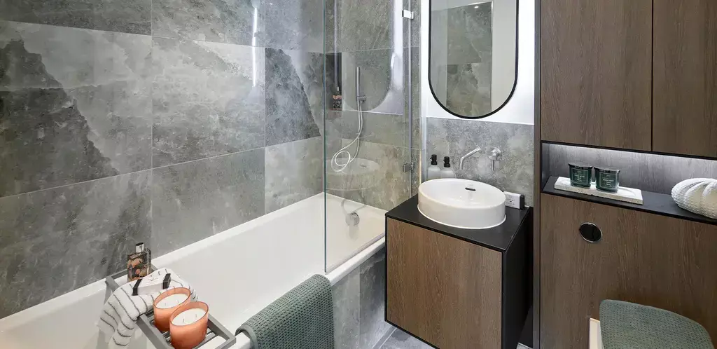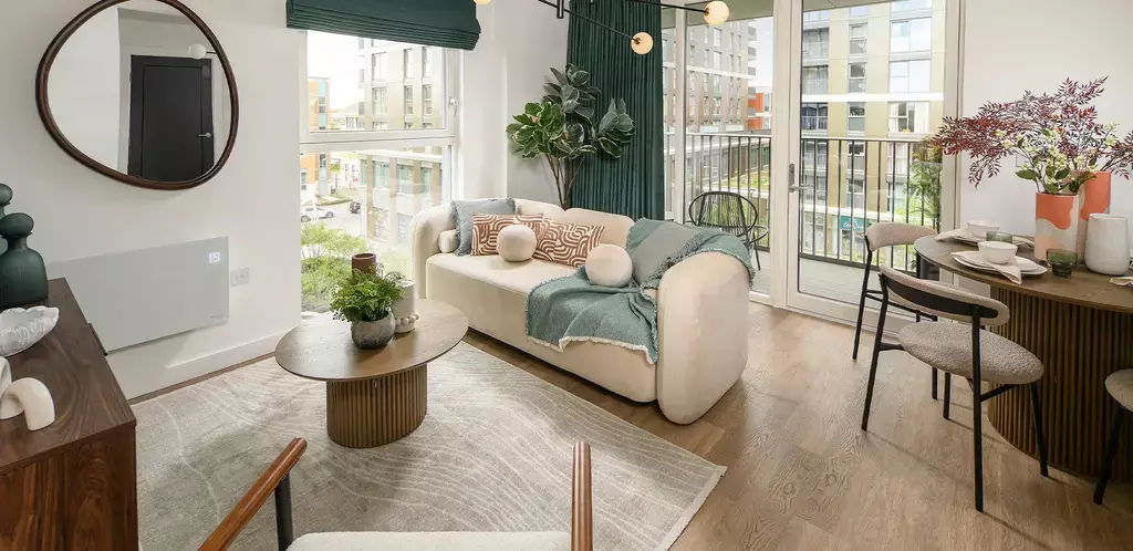 The apartment benefits from a bright open-plan living and dining area, a contemporary kitchen finished to a high specification and a spacious double bedroom. With its north-facing aspect, the home enjoys a calm and private feel while still being part of a vibrant new community.