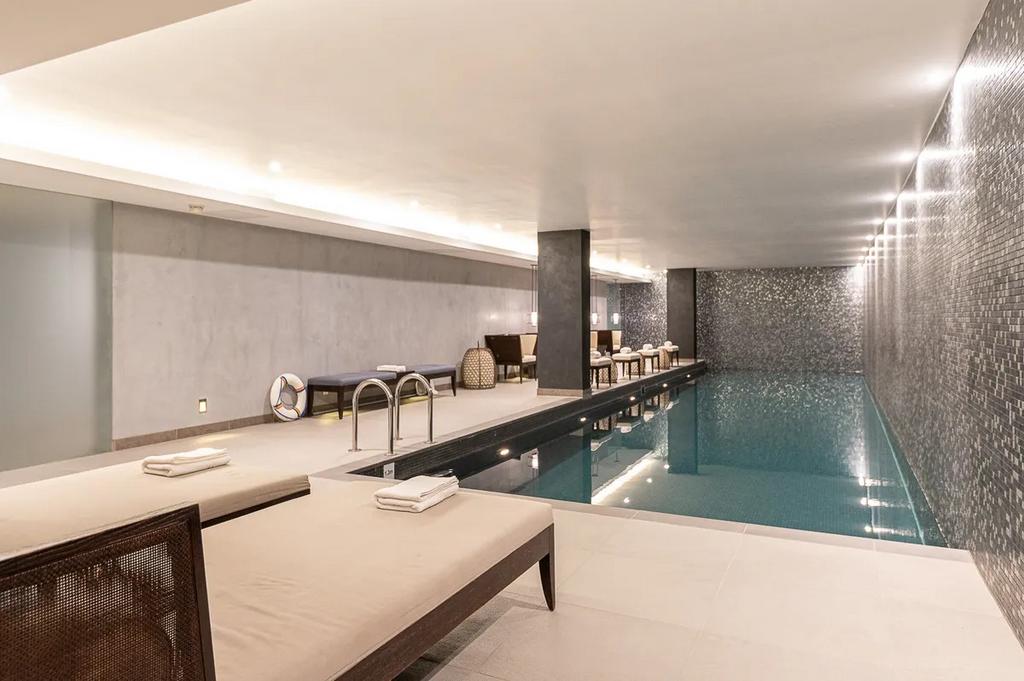 It is an impressive development within a restored stucco-fronted building, very secure with 24-hour concierge, underground car park, leisure facilities and beautiful communal gardens. The property is in immaculate condition and boasts an impressive contemporary interior design while retaining original features. It comprises a bright living room, fully fitted kitchen, reception/dining area, a master bedroom with en suite bathroom/WC, a second double bedroom, family shower room/WC. The property benefits from the private underground car parking space. The property is offered for sale with a long lease of over 900 years remaining and a private underground car parking space. It is available for sale with no upper chain.